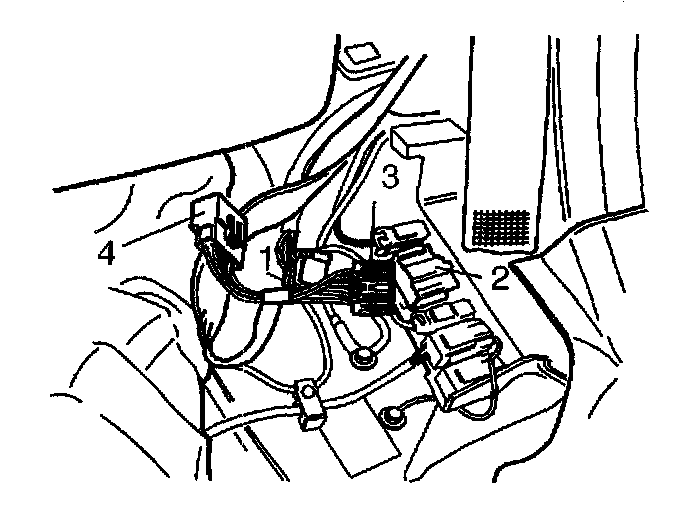 - Connect the connector (4) from the routed cable harness to the disconnected connector (1). Wrap foam tape (from the kit) around them