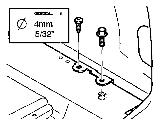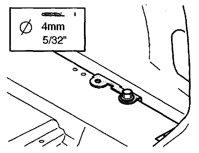 - Drill a dia. 4 mm (5/32") hole in the side member, through the front hole in the bracket