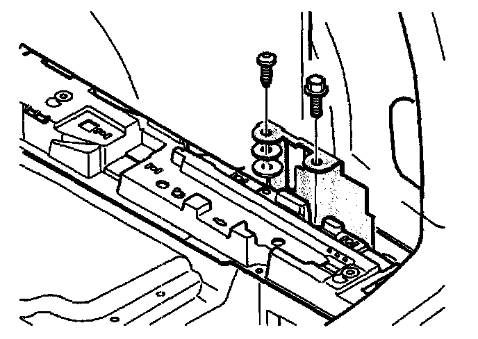 - Position two new spacer washers between the front hole in the bracket and the floor support. Tighten using a new self tapping screw.