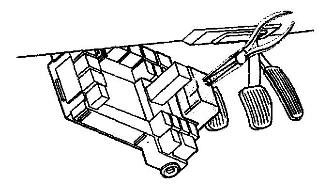 - Insert a screwdriver between the bracket and the relay box. Turn the screwdriver so that the bracket opens out. At the same time, pull the relay box out of the bracket towards the underside of the dashboard