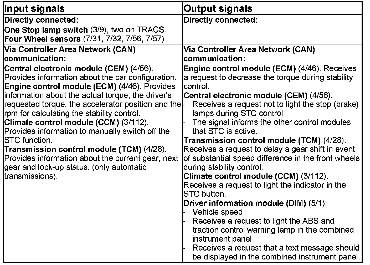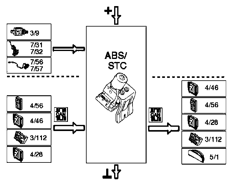 Signals, ABS control module with or without STC/TRACS