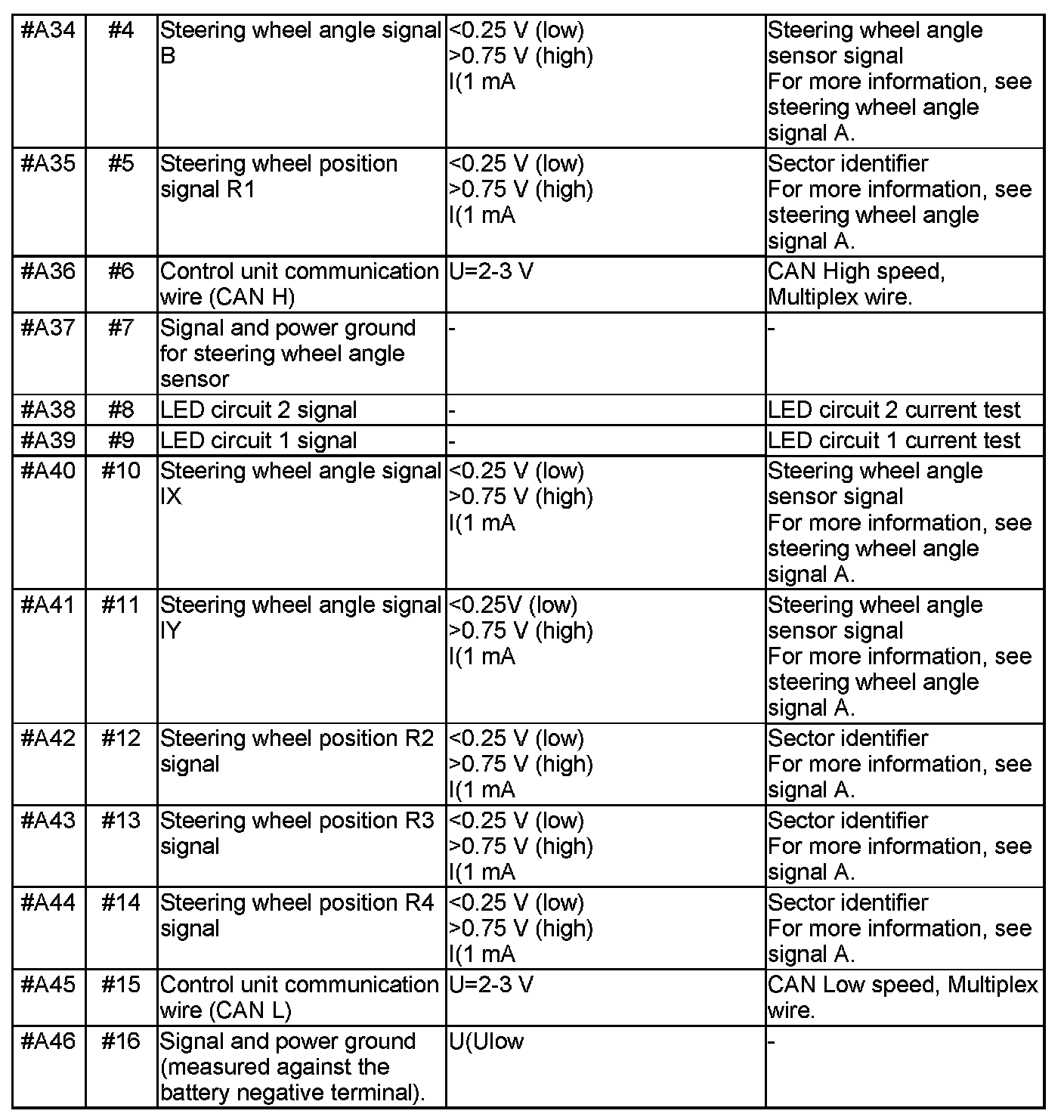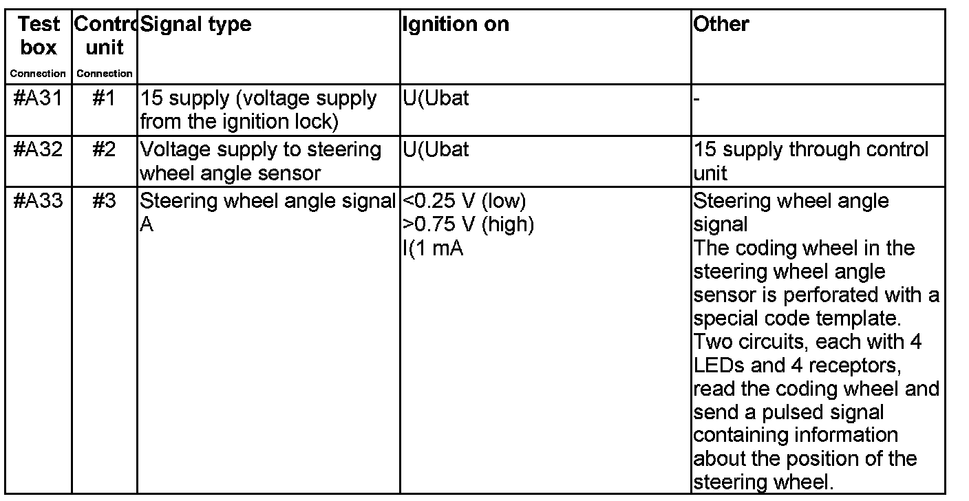 Signal description, Control unit for the steering wheel angle sensor (SAS)