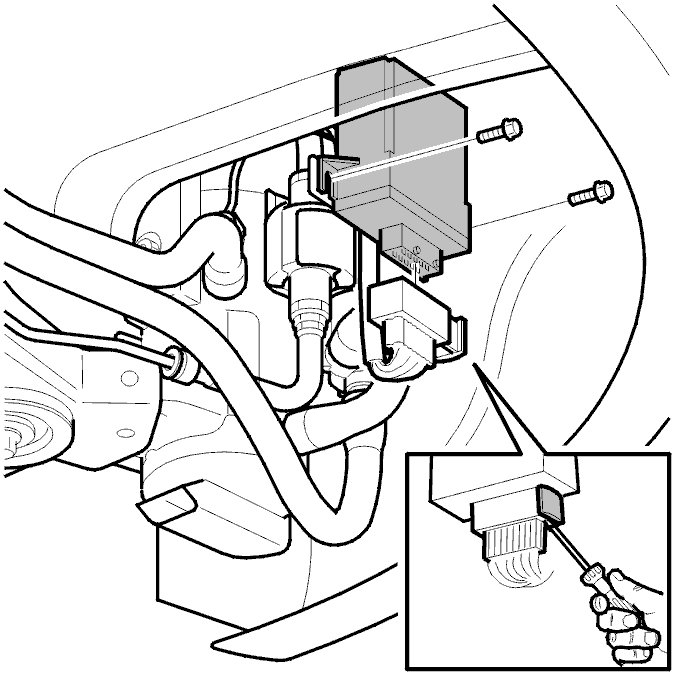 Position a screwdriver between the control module connector and its locking handle.