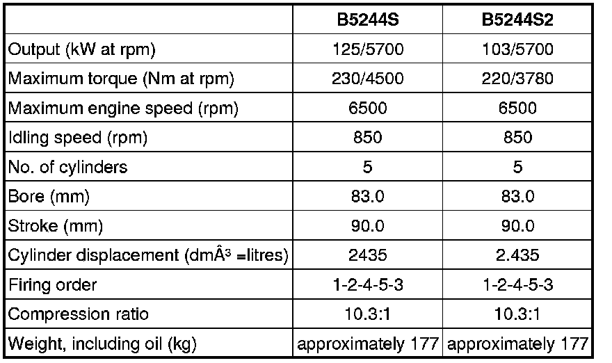 The oil pressure listed is for an oil temperature of 100°C, which is reached after 10-15 minutes driving.
