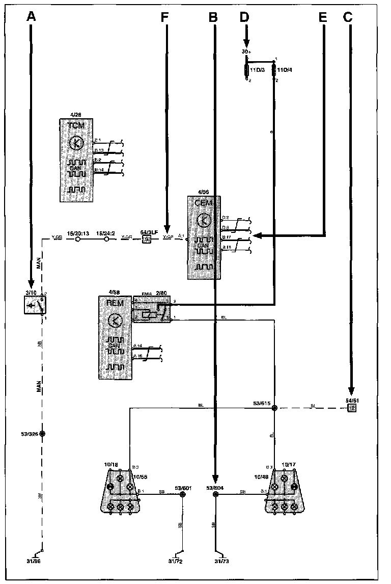 There is a list of components at Component I.D List, where, with the help of the component designation, you can read off the name of the component, for example, 3/2 = light switch. Diagram Legend