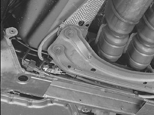 Note! The routing of the heated oxygen sensor (HO2S) wiring over the brake pipe.
