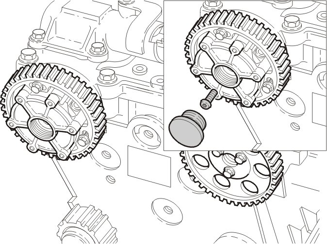 - the timing gear pulley without variable valve timing on the camshaft. Use the two screws positioned so that the markings on the timing gear pulleys and upper timing cover correspond. Do not tighten.