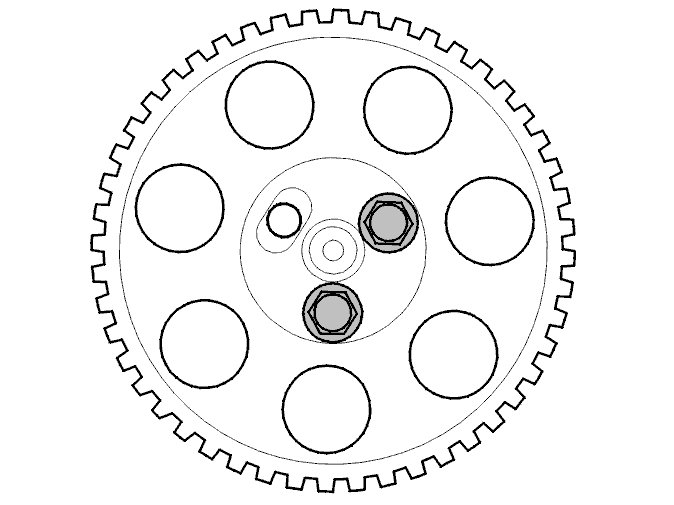 Note! Adjust so that the screws in the timing gear pulley without variable valve timing do not reach the limit position in the oval holes.