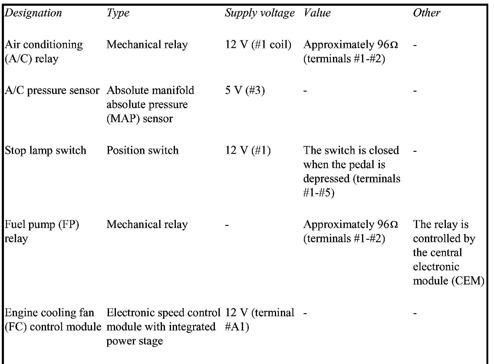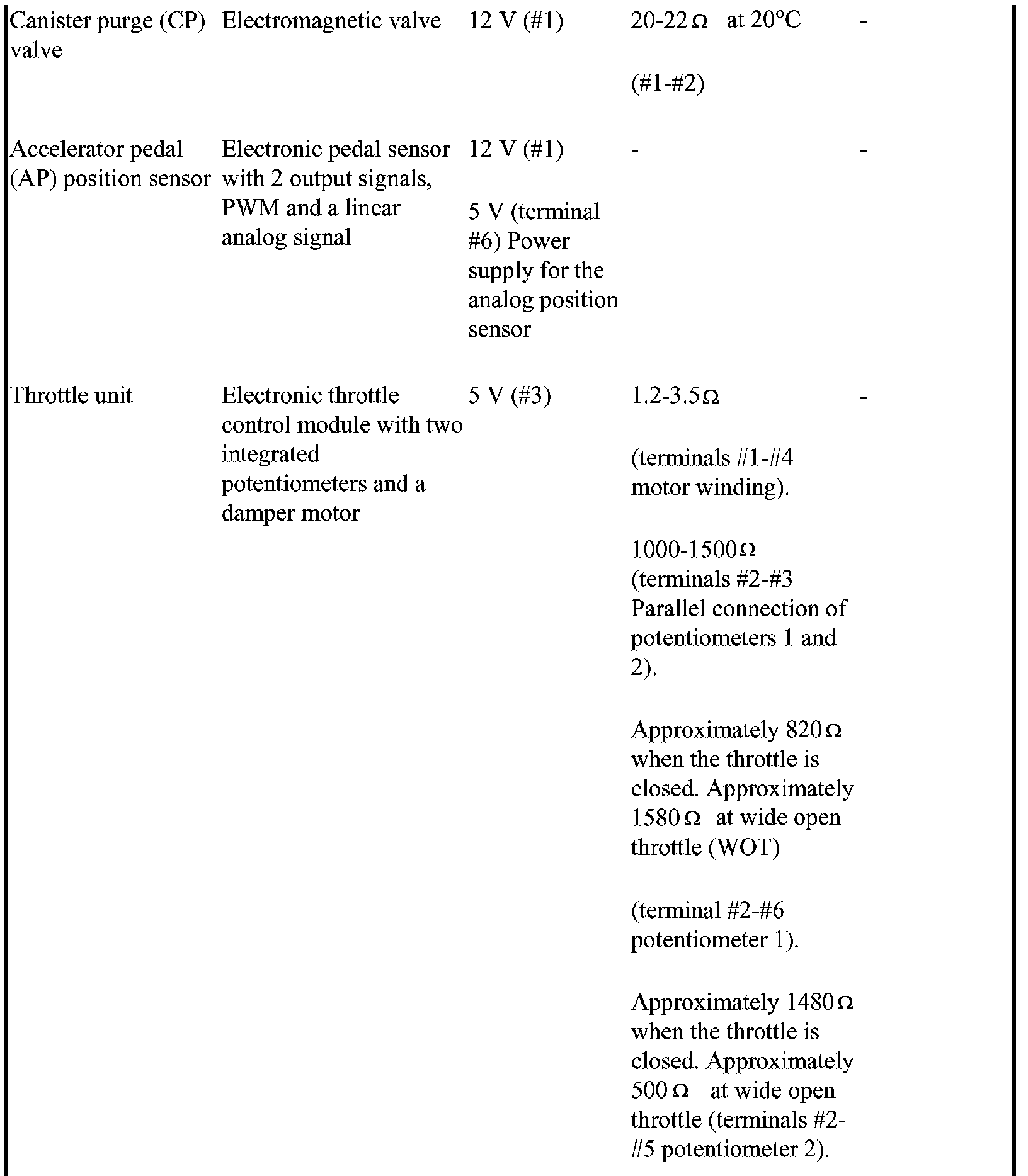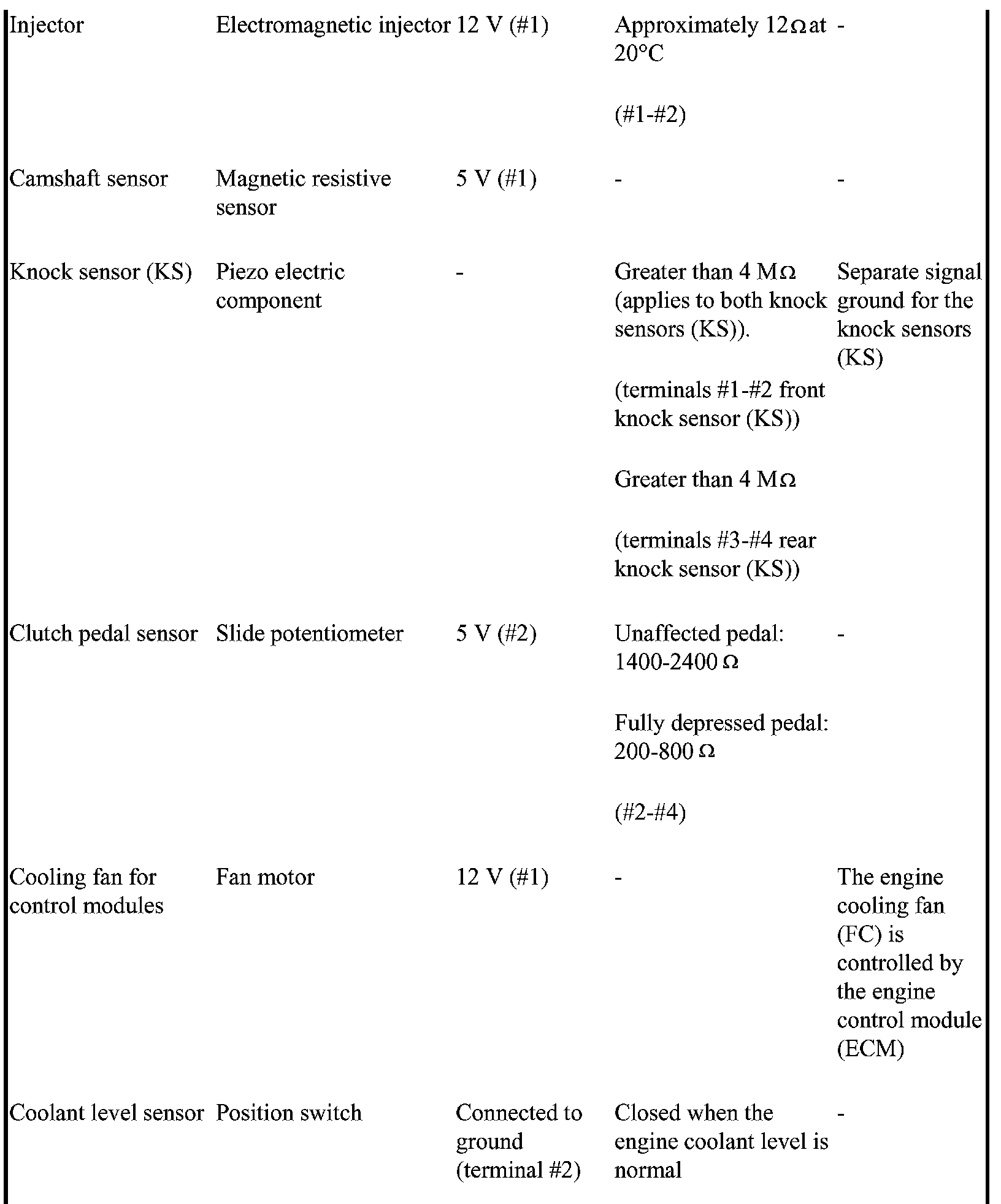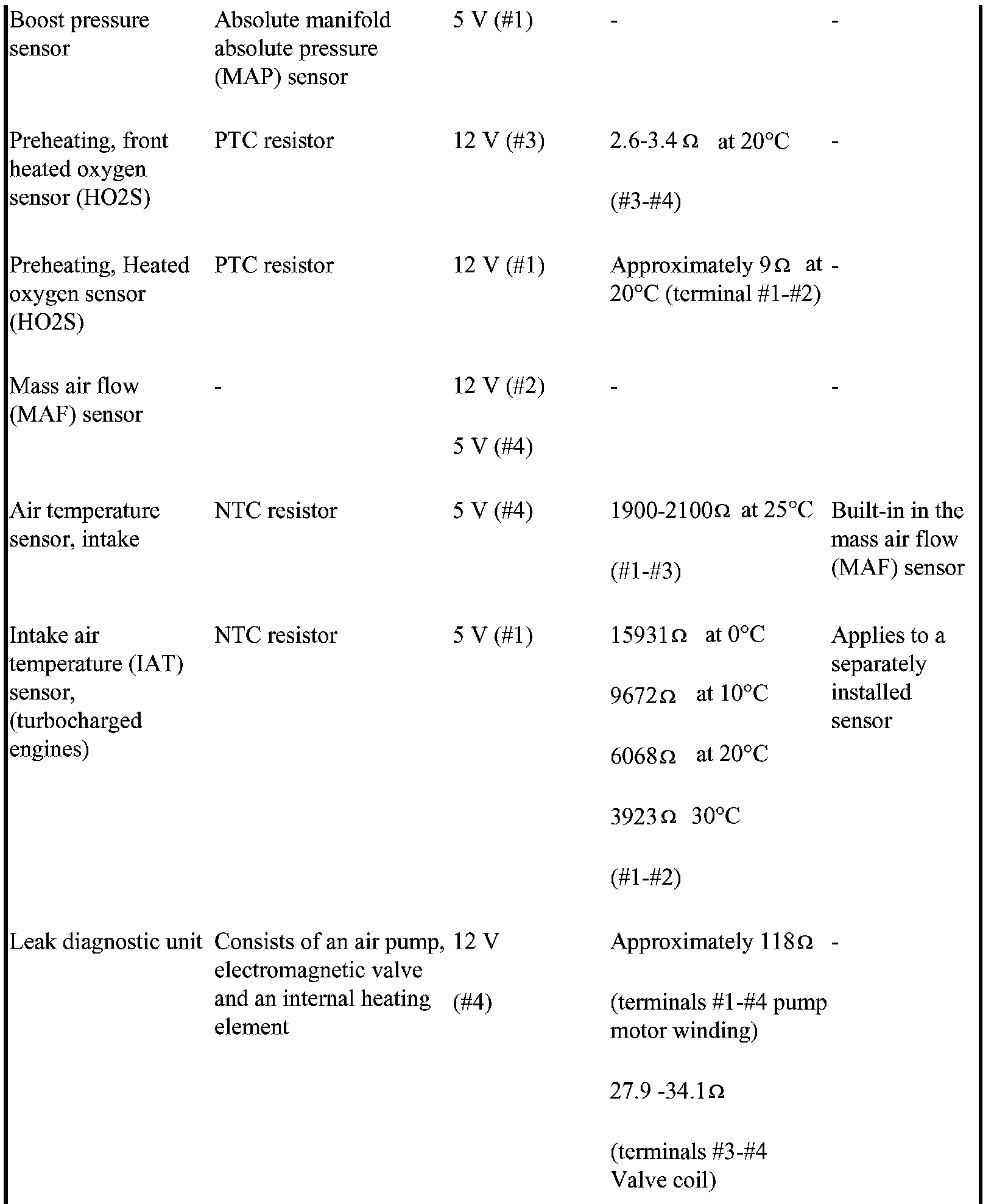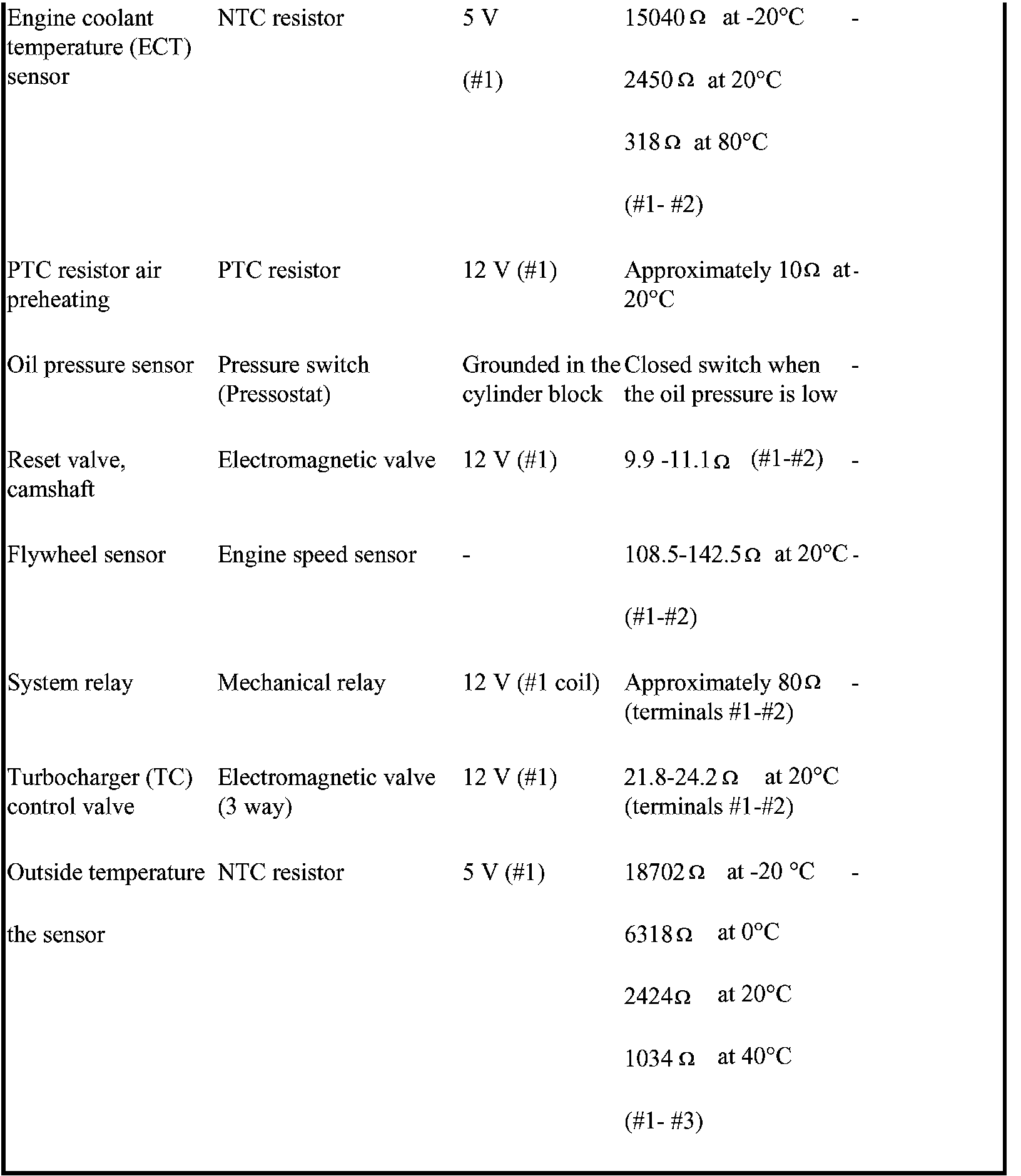 The component specification gives the value of the component when the connector is disconnected. Where no value is given, it is not possible to measure a relevant value at the component.