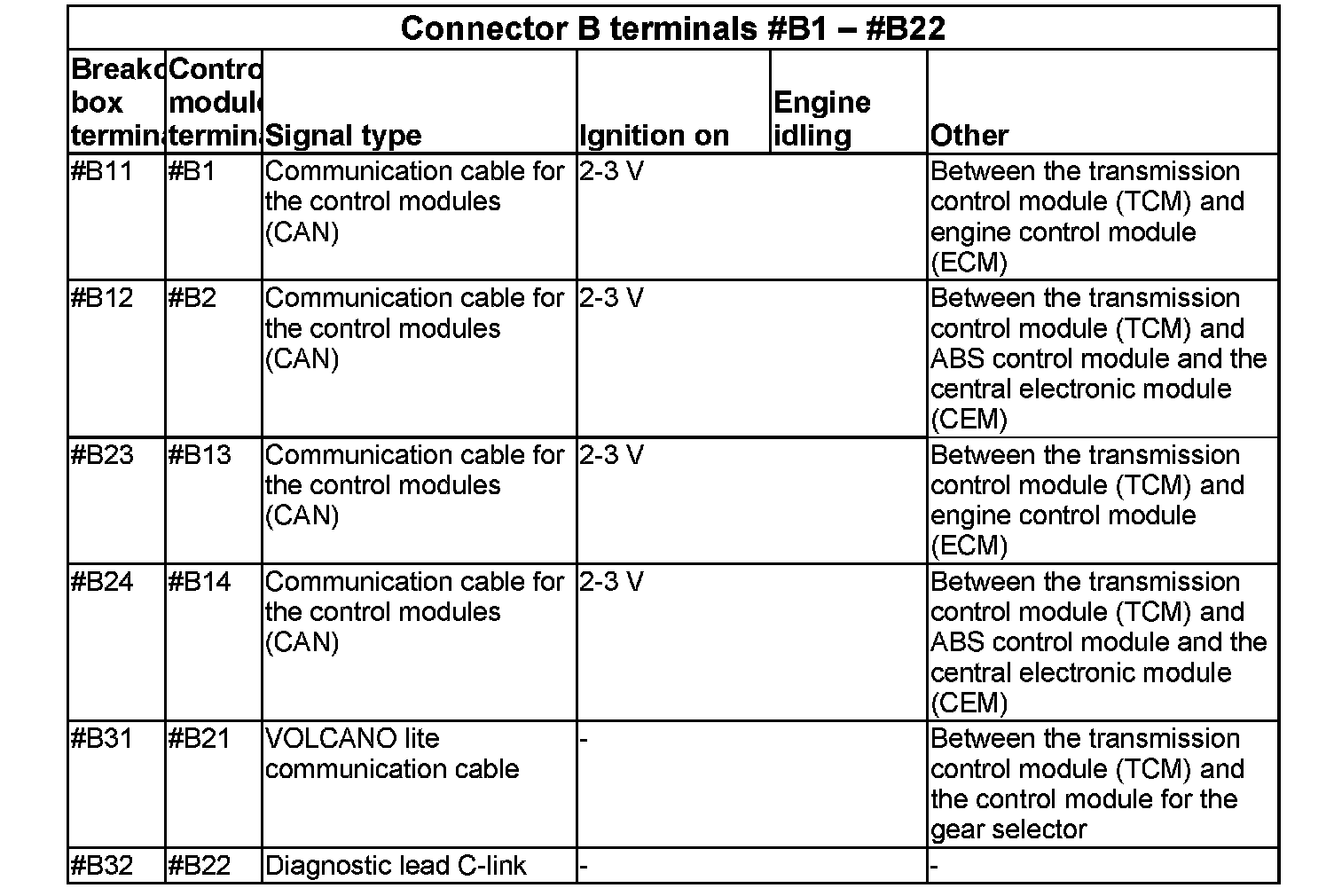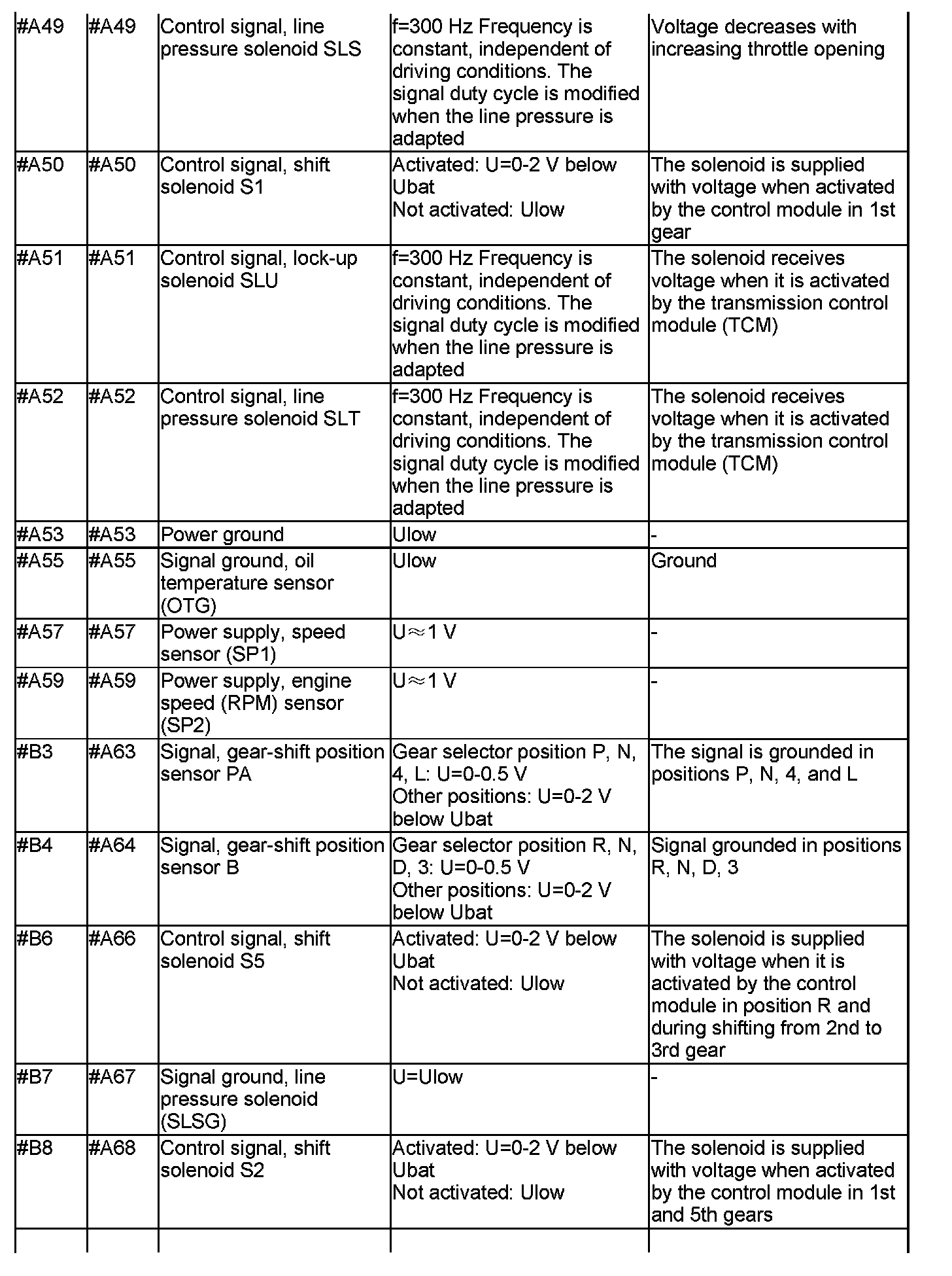 Signal description. Transmission control module (TCM)