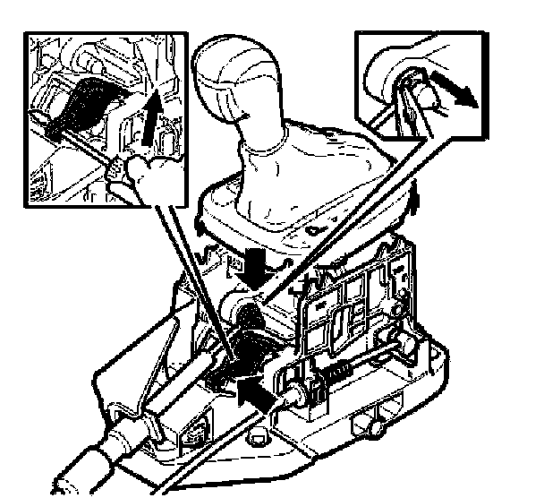 Remove the mechanical cable lock from the gear selector lever. Use pliers. Pull the lock out of the bushing.