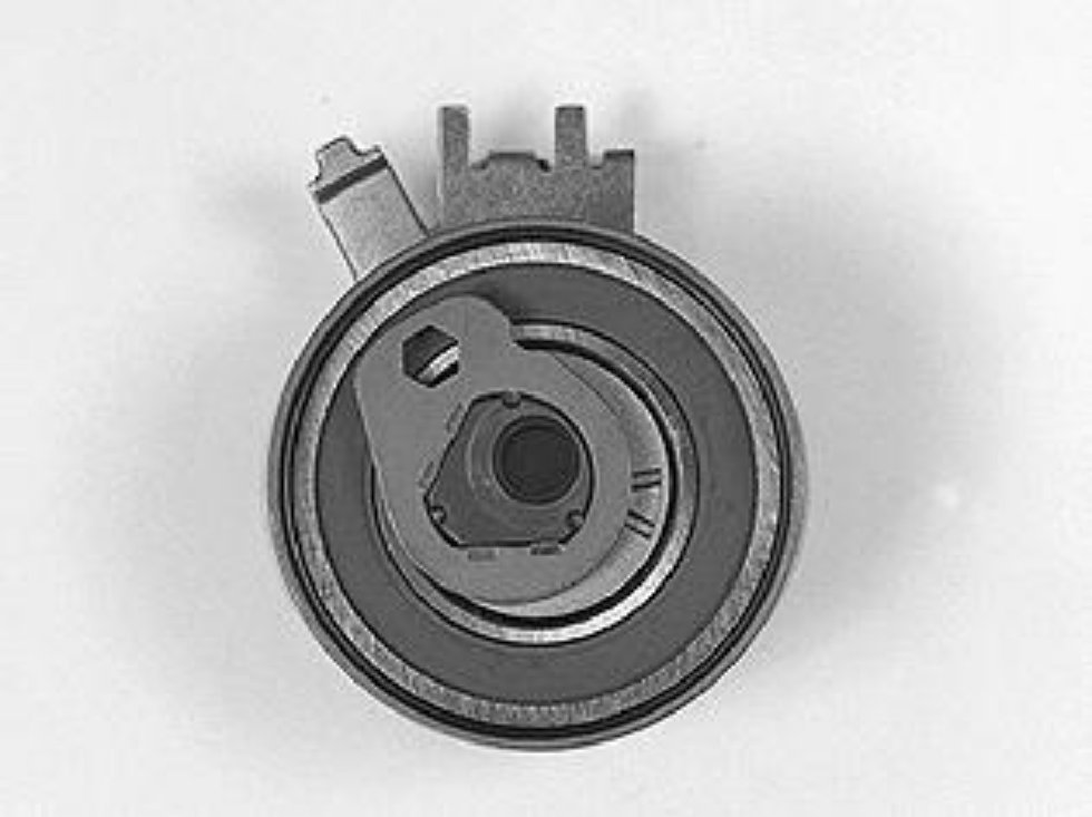 Tighten the center screw in the timing belt tensioner. Tighten to 5 Nm in the 10 O'clock position.