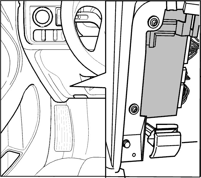 On right-hand drive cars, the control module for the central electronic module (CEM) is positioned under the panel by the control for opening the hood.