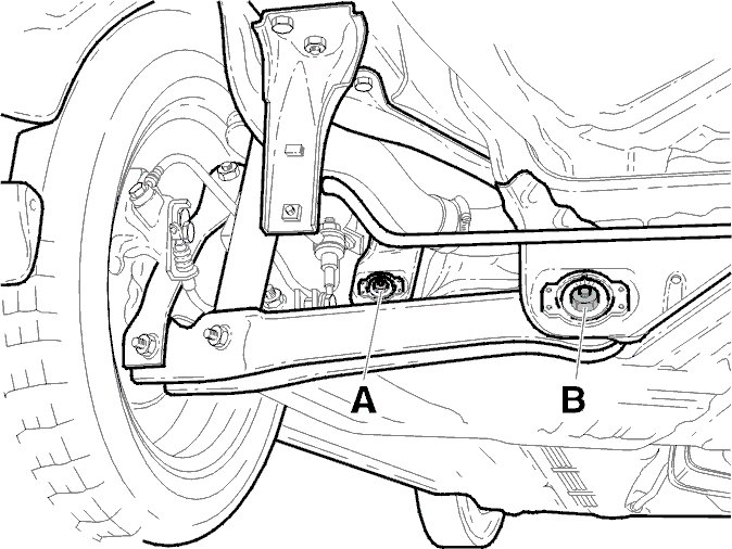 Slacken off the nut (B). Turn the adjustment screw until the correct camber angle is obtained.