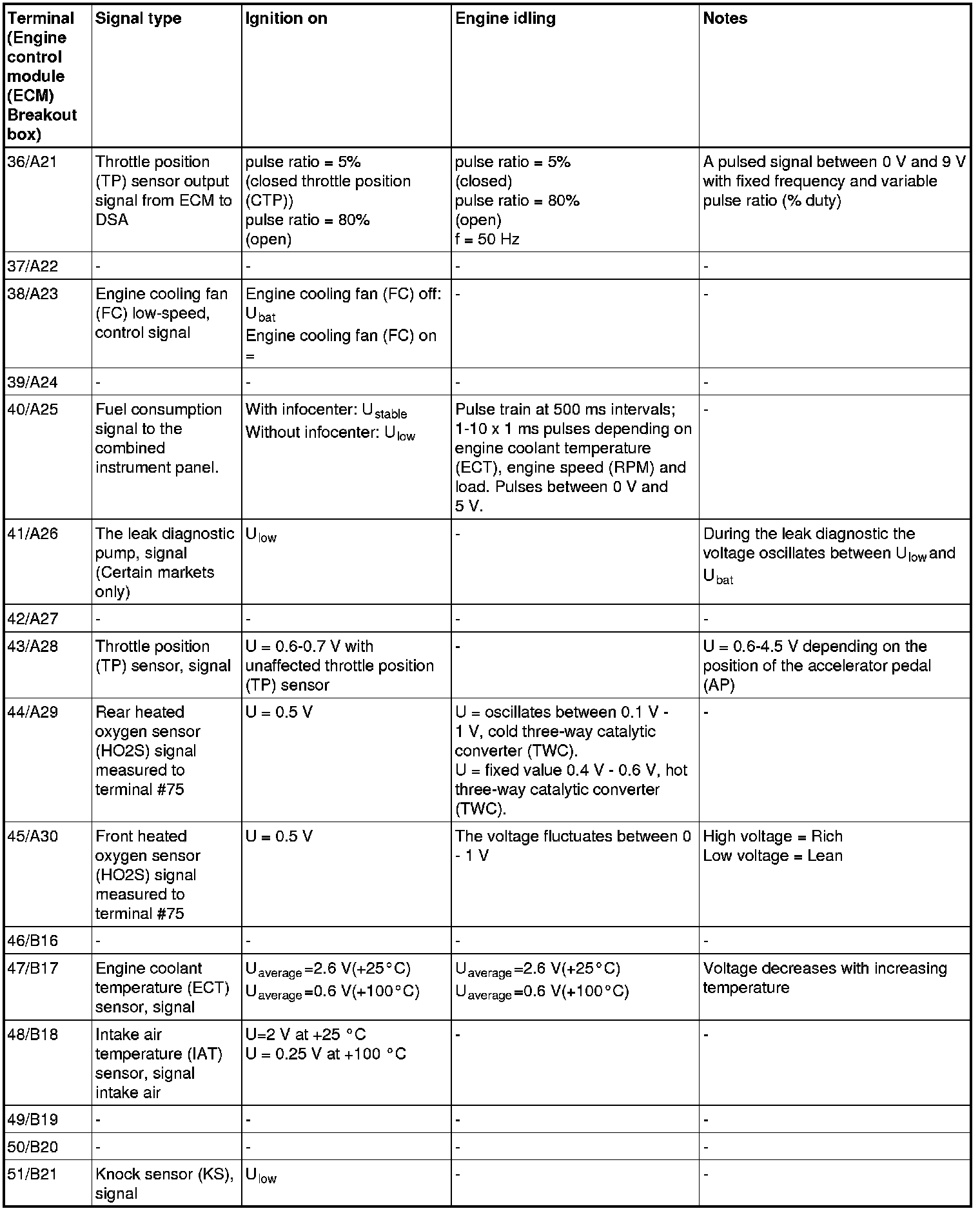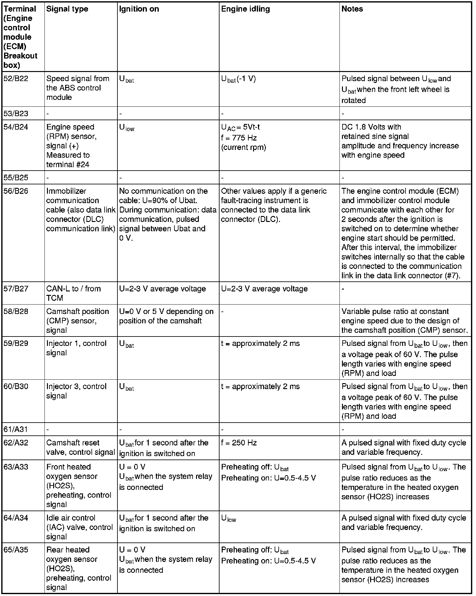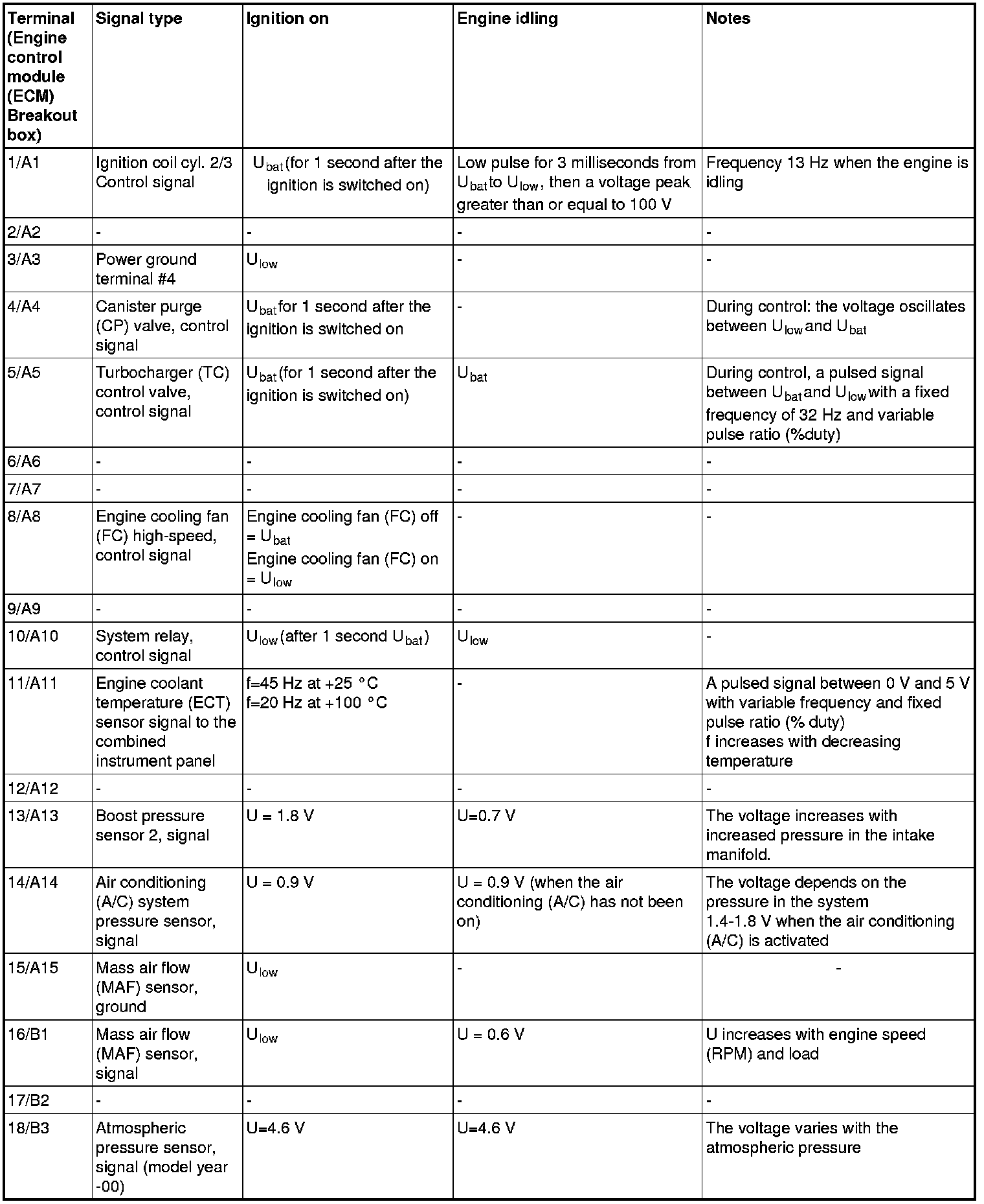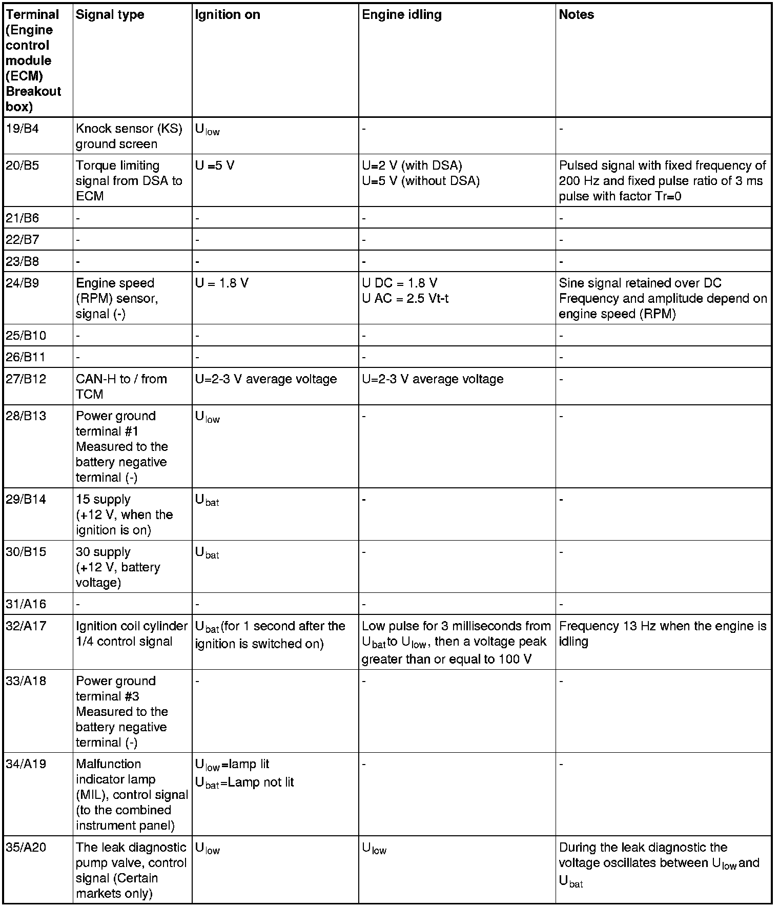 The values specified in the table apply with the engine unloaded and at normal operating temperature.