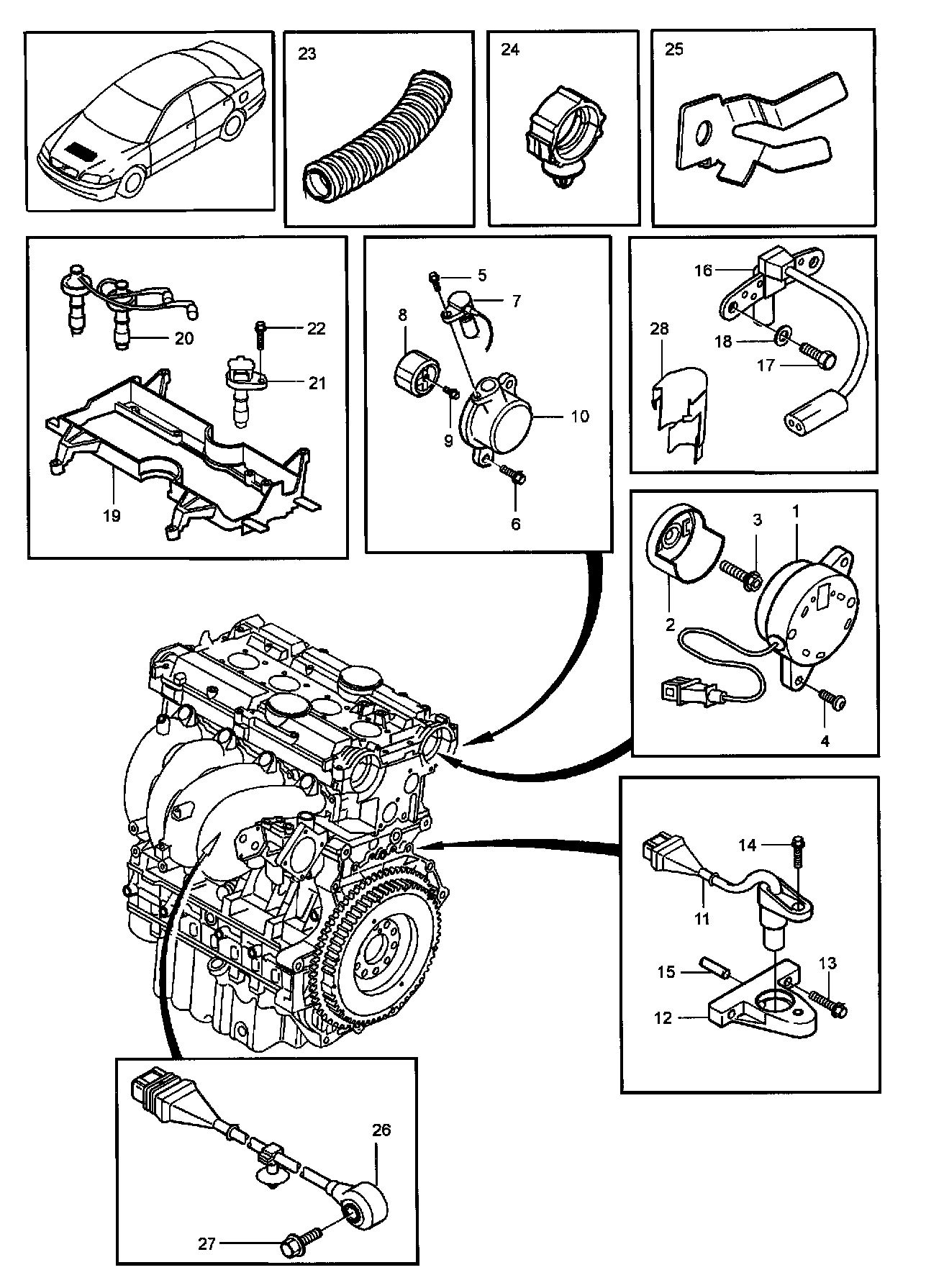 Ignition system. 2000- 4CYL EXC B4184SM. TURBO (USA) Illustration: