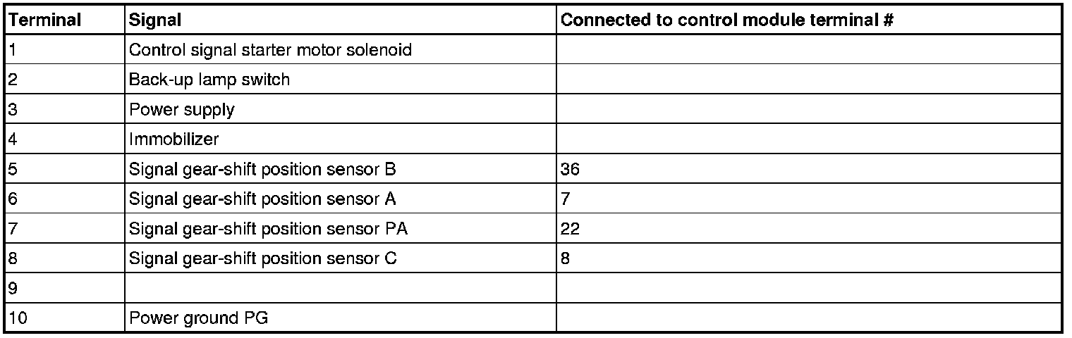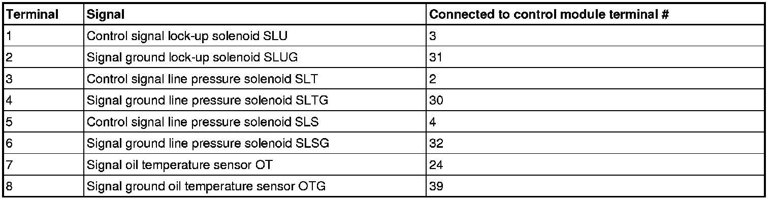 The illustrations below show the transmission connectors with the numbering for each terminal pin.