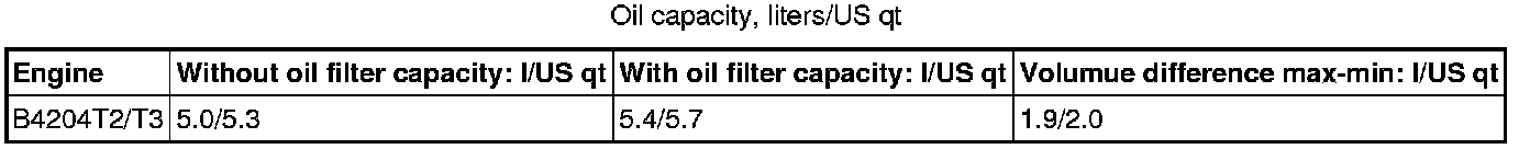 The correct quantities of oil are listed below. The capacities are given in liters/US qt. and cover all engines, with and without