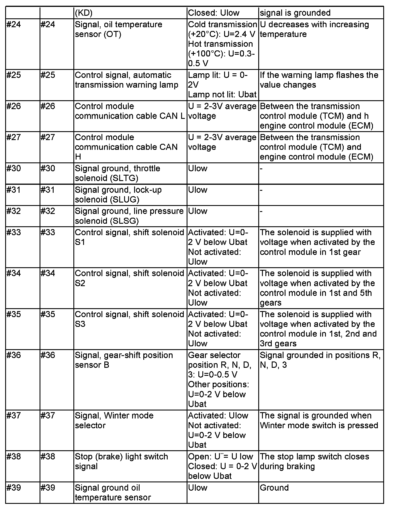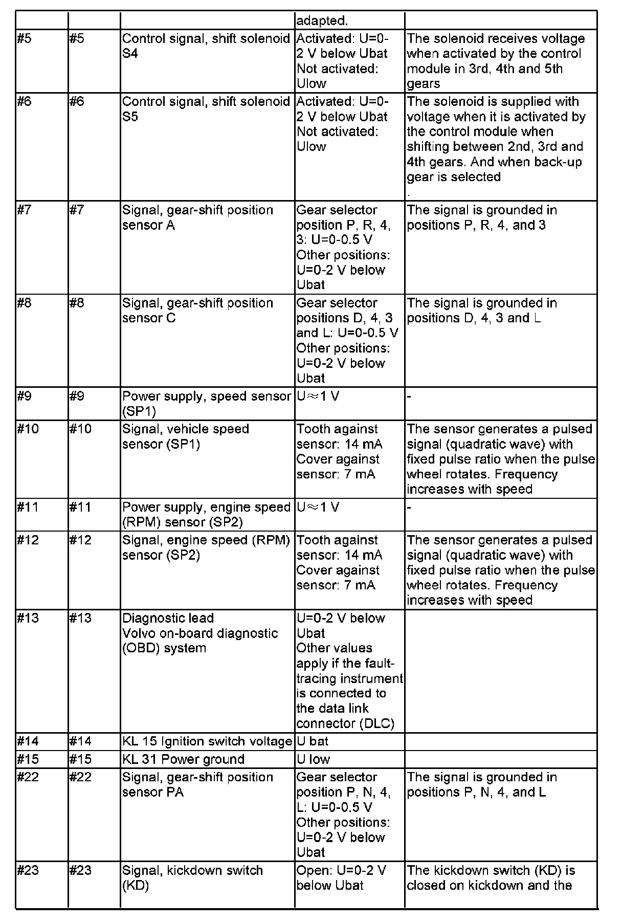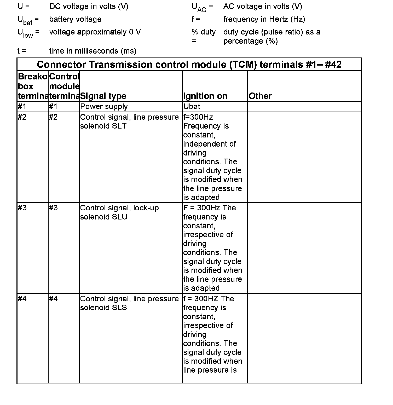 Signal description. Transmission control module (TCM)Connectors, Transmission control module (TCM)