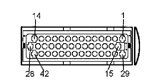 The illustration shows the terminals on the cable harness connector that are connected to the transmission control module (TCM).
