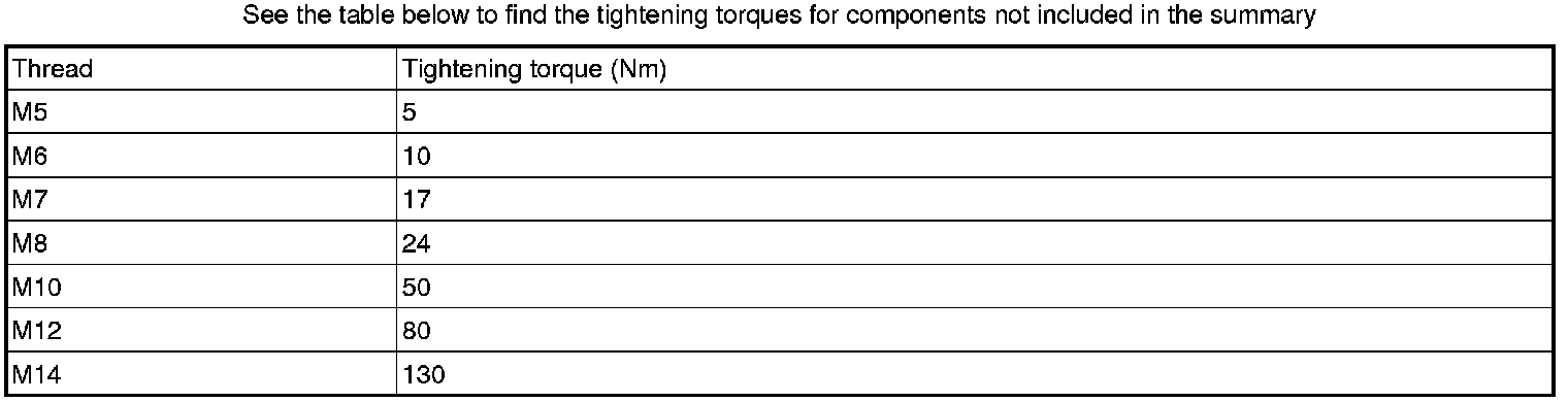Summary of specific components and tightening torques