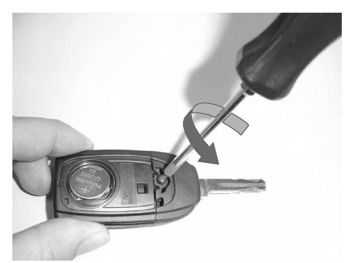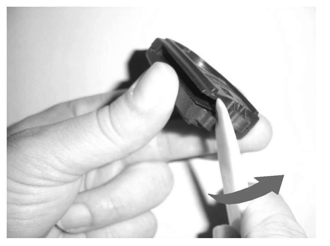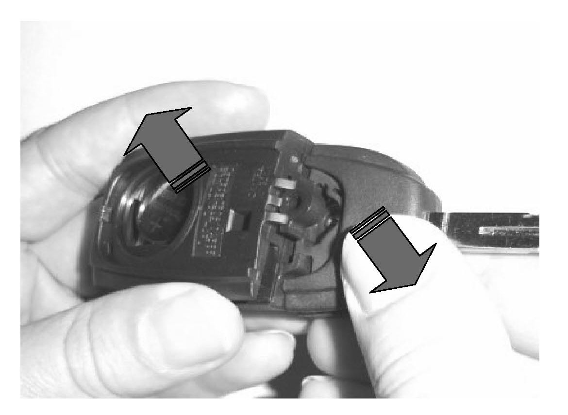 5) Carefully open remote from the front side with the plastic bone tool as shown in the picture. Open slightly to insert the D-ring with swivel attached.