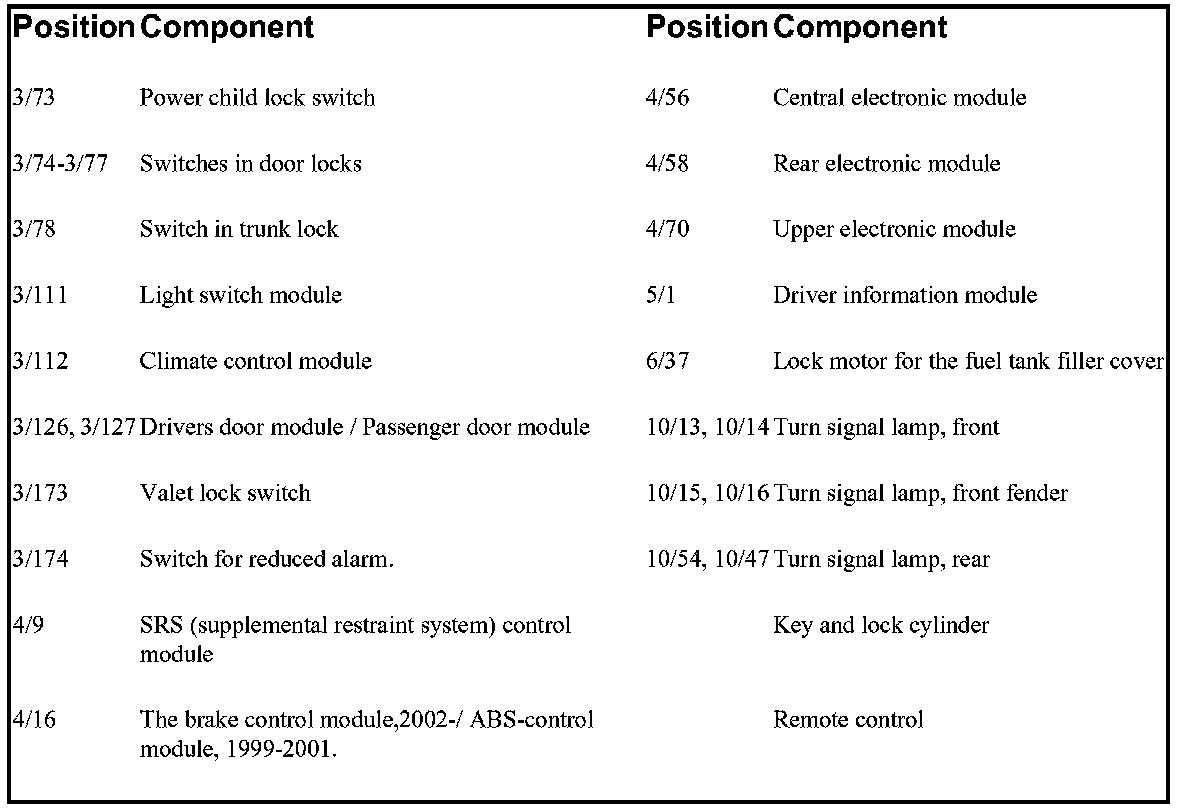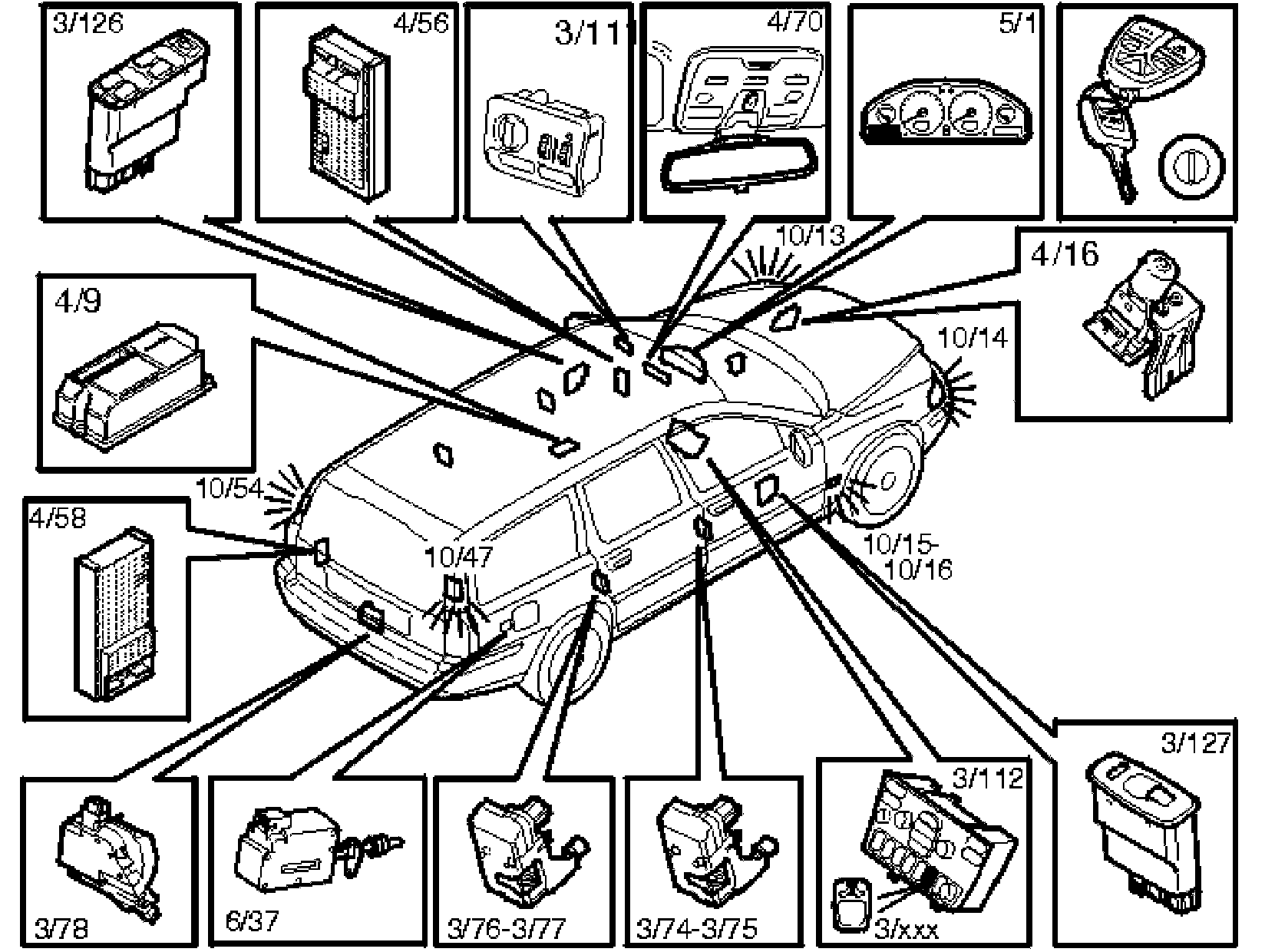 The central locking function uses the components shown in the images (may differ depending on model, model year, options and market).