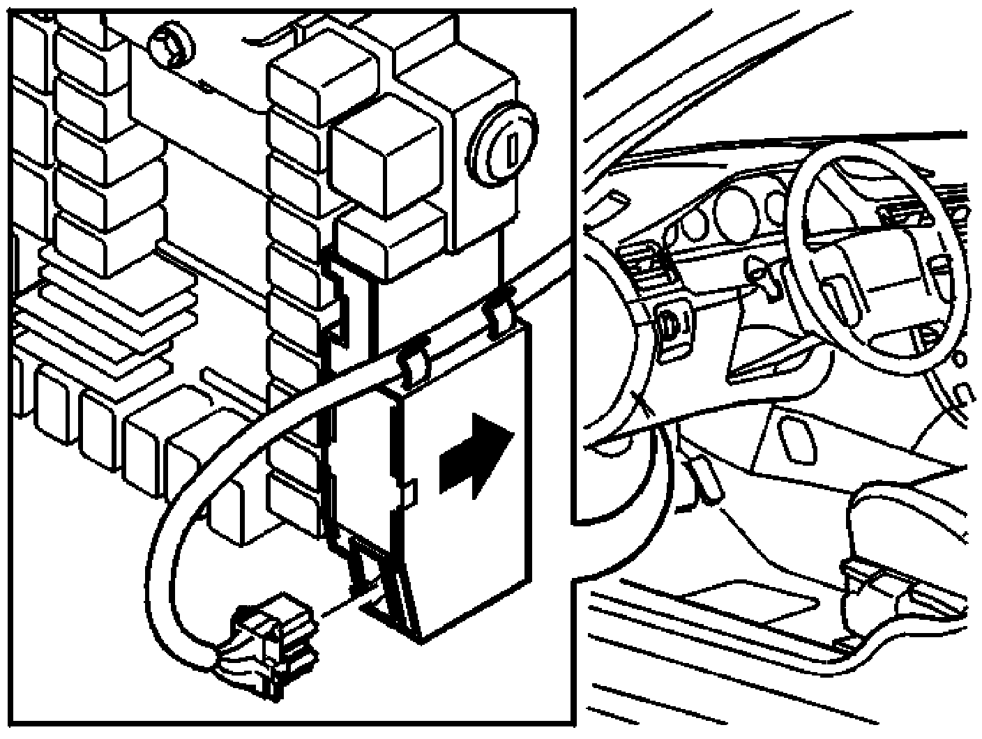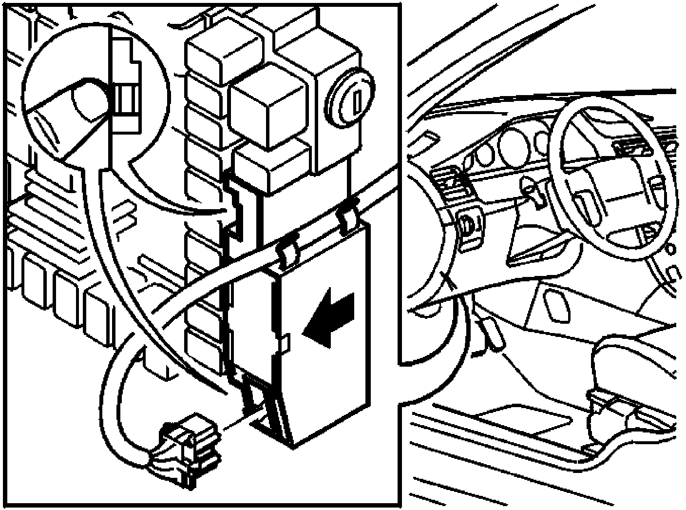 Remove the control module by pressing the 2 catches using a finger and pulling the control module backwards (see the arrow in the figure).