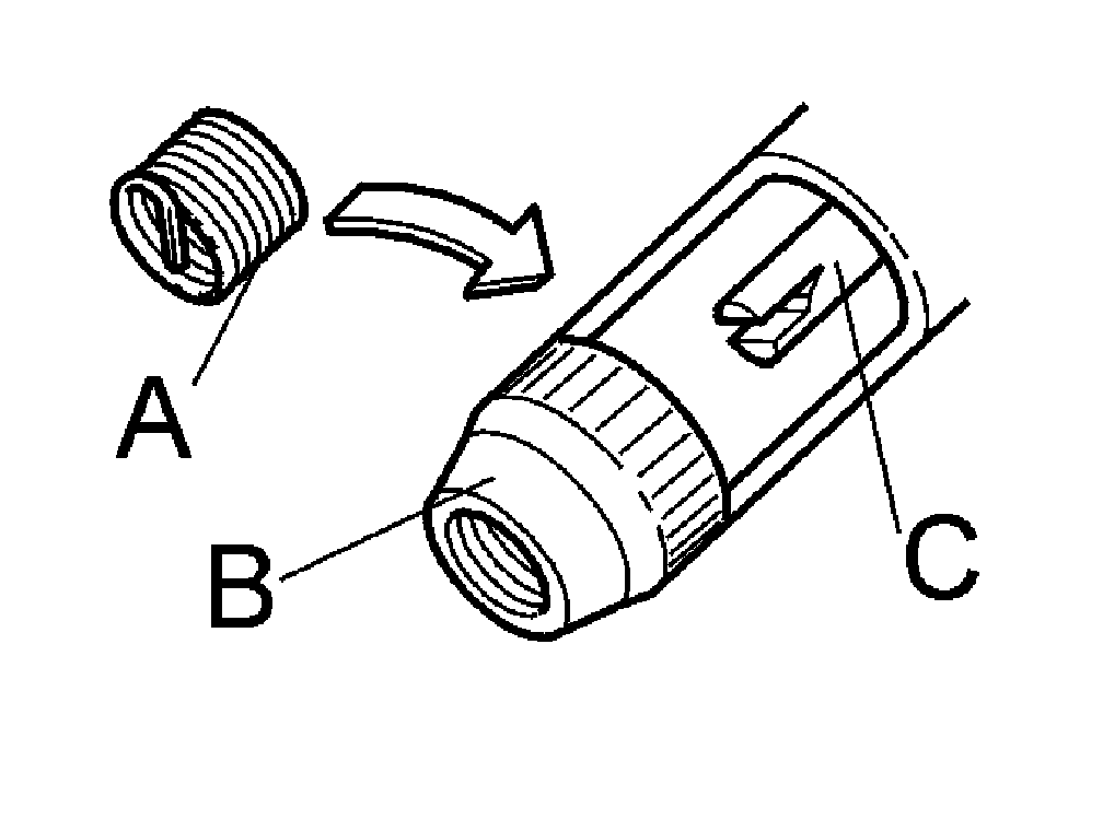 Twist the thread insert down and check that the upper thread is at least a half thread down into the thread and that none of the insert protrudes into the combustion chamber.