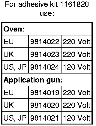 Note! The procedure refers to two different Volvo adhesive kits. The products in the kits must not be mixed. For further information, see Volvo Chemical catalogue.