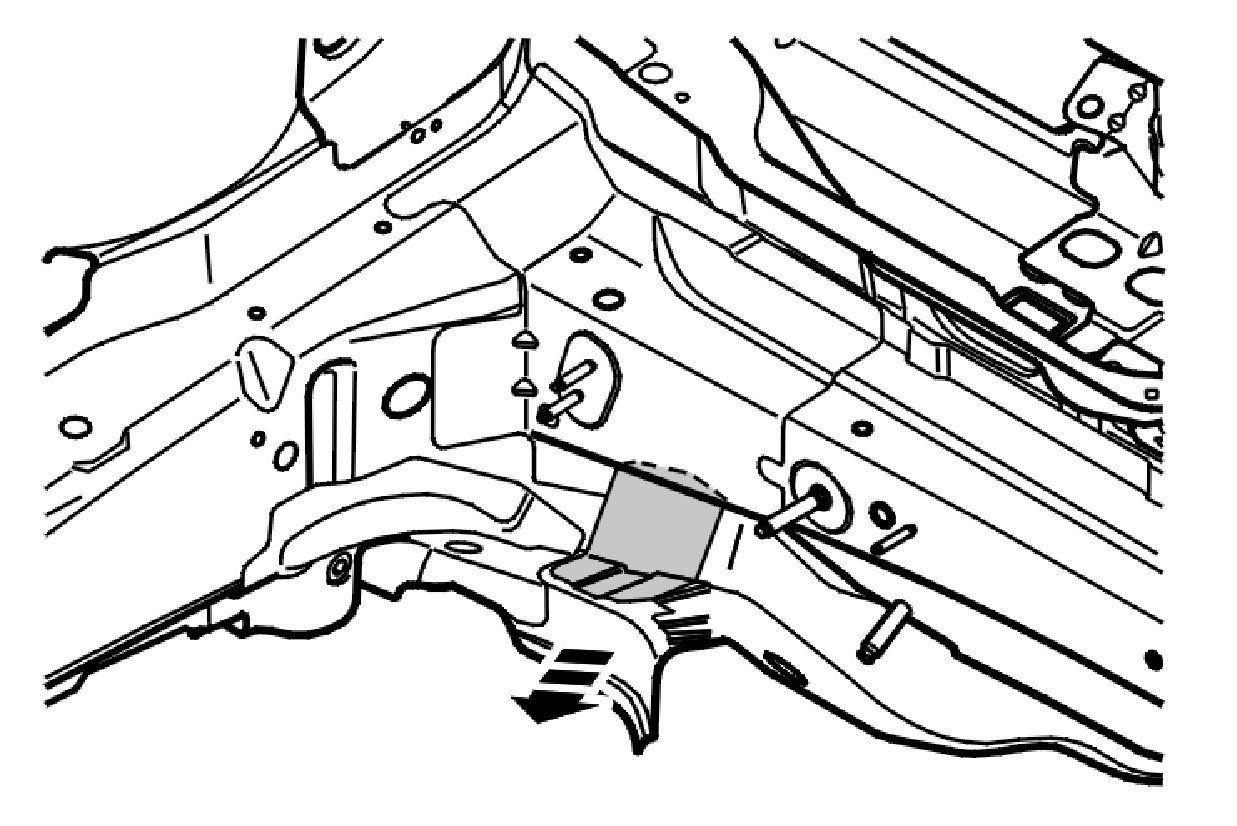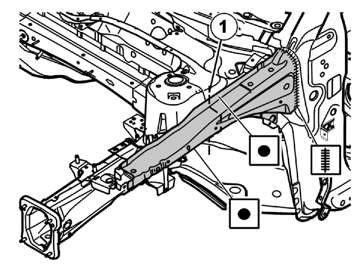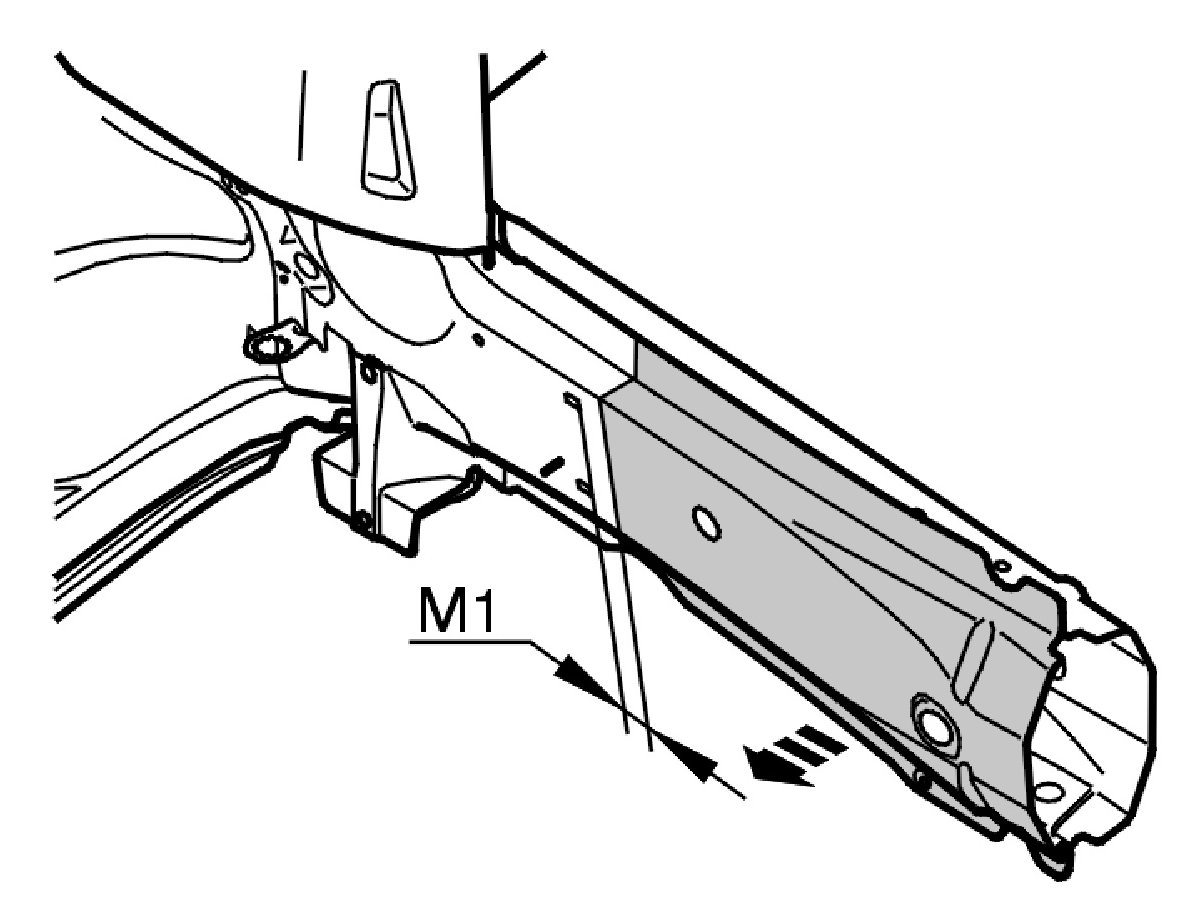 Cut the side member 30 mm (M1) from the 2 square holes or replace the entire member.