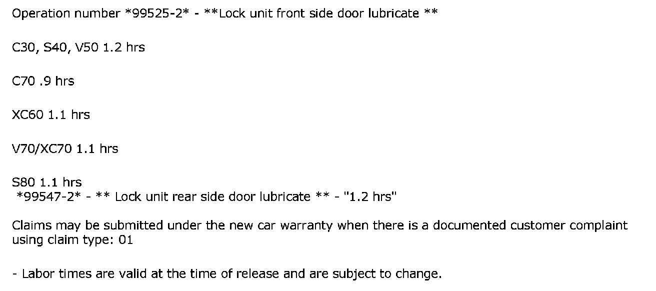 Title: Door locks, unstable function in cold weather conditions,.Ref No: US17645.10.0 en-GB