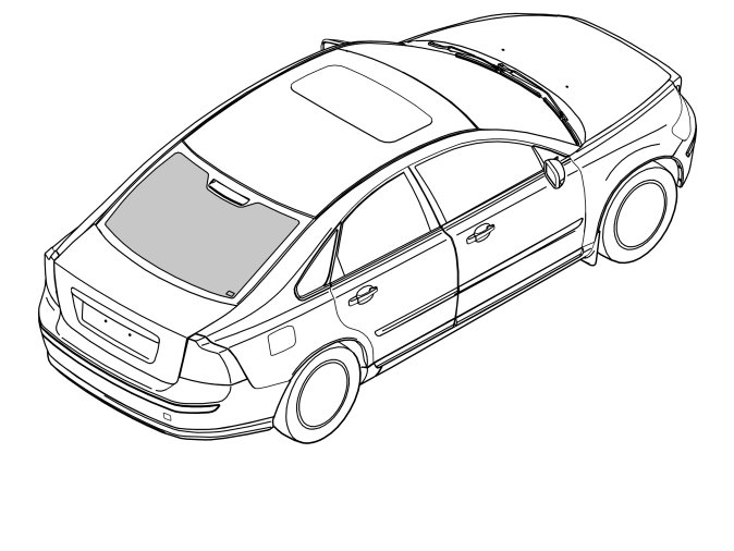 - Unfurl the sun blind and position it where the rear windscreen meets the parcel shelf. The Volvo label must be located on the upper edge towards the roof.