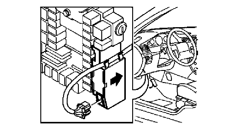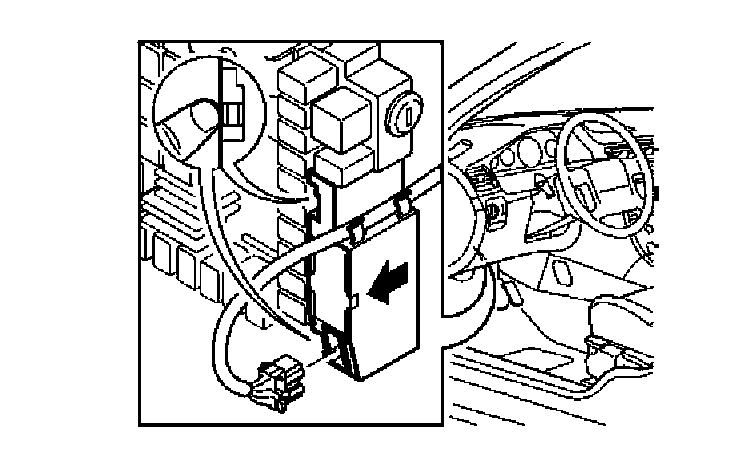 Remove the control module by pressing the 2 catches using a finger and pulling the control module backwards (see the arrow). Remove the connector and the cable.