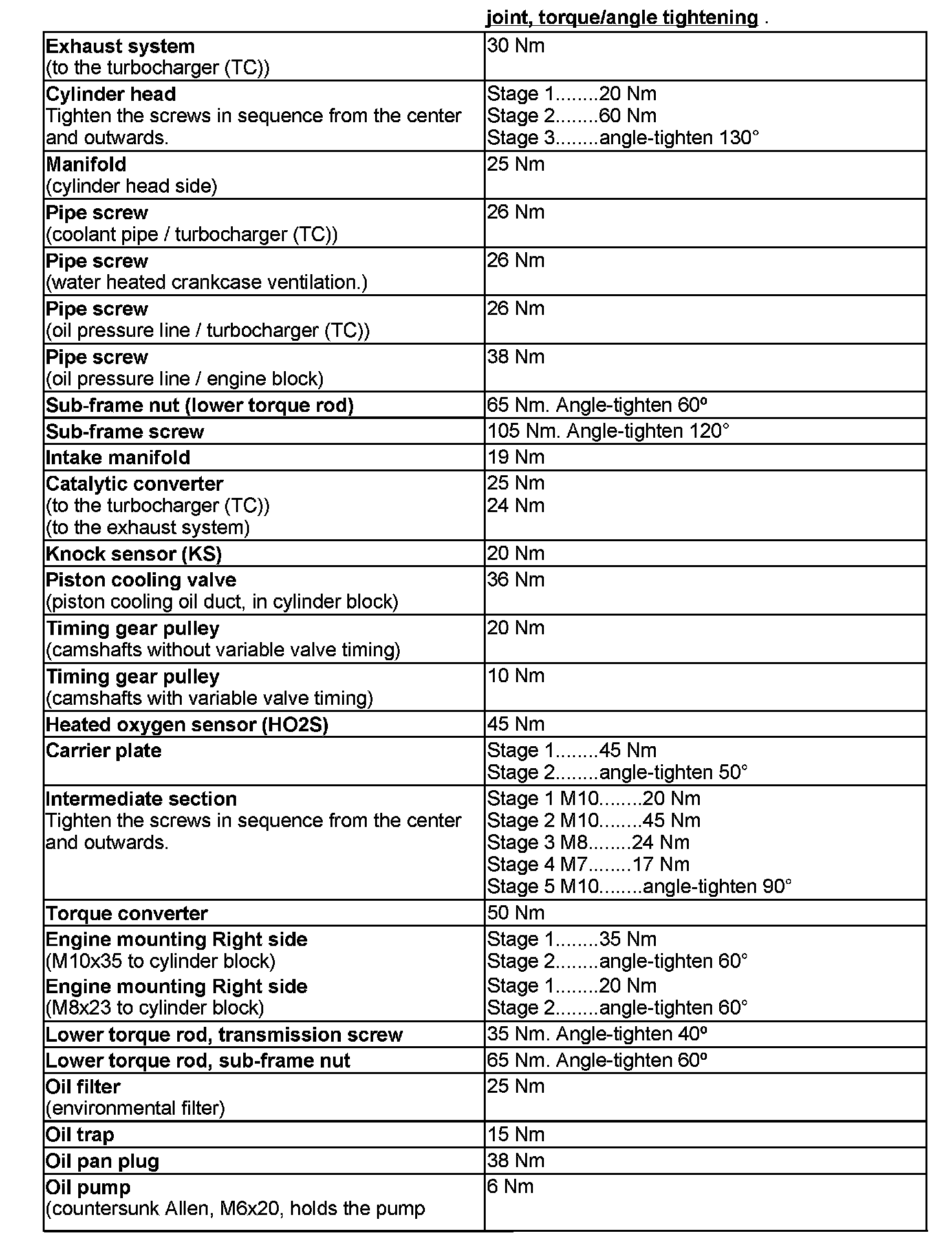 Always use new screws and nuts when angle tightening. Any exceptions to this rule will be indicated in the method.