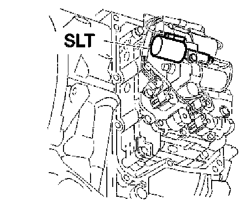 The line pressure solenoid, SLT is in the transmission control system, which is mounted on the front edge of the transmission. The line pressure solenoid, SLT consists of an electric coil which controls a hydraulic valve. The solenoid is controlled by pulse width modulation (PWM) voltage and is grounded via the control module. The solenoid is linear. The hydraulic valve is controlled by the varied current which is the result of the current pulse conditions. During high pulse conditions, (at high currents (approximately 1 A)) the line pressure is low. During low pulse conditions (at low currents) the line pressure is high. The solenoid also engages and disengages neutral control. In the event of an open-circuit the line pressure reaches maximum which causes hard shifting. The hydraulic valve is then completely open.