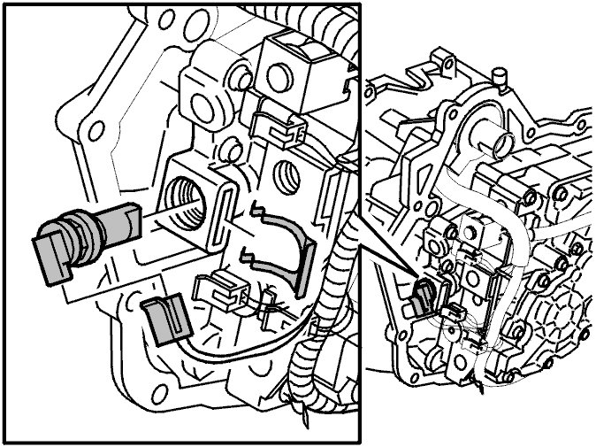 Note! The line pressure solenoid must be removed to access the input speed sensor.