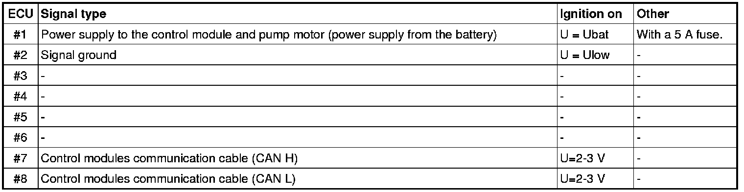 All the values indicated are taken between the terminal in column 1 and terminal #2 (ground).