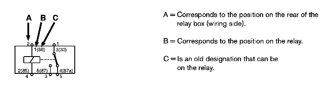 The diagram indicates two or three different designations for the relay's position. This is described below.