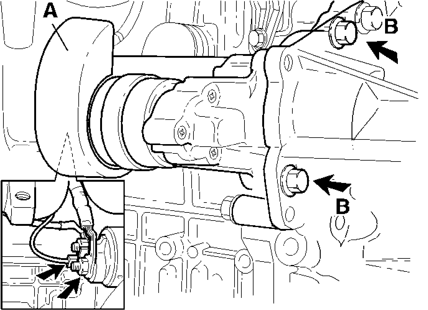- the starter motor using the two screws. Tighten the screws (B) by hand. Tighten to 50 Nm