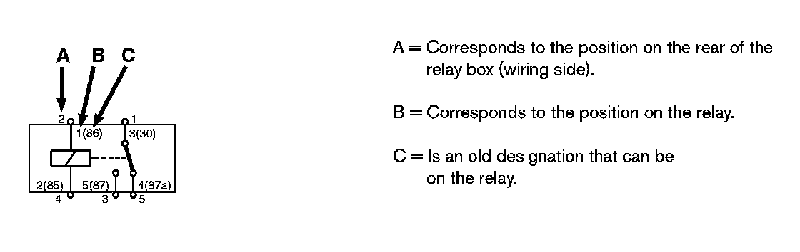 The diagram indicates two or three different designations for the relay's position. This is described below.