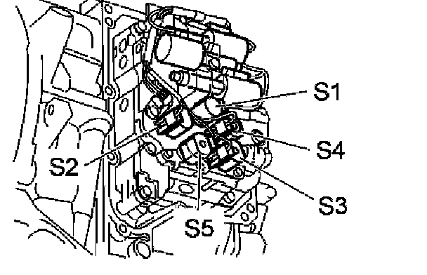 The shift solenoids S1, S2, S3, S4 and S5 are positioned in the valve body in the transmission control system, which is mounted on the front edge of the transmission. The shift solenoids (on/off type), consist of an electrical coil which controls a hydraulic valve. The solenoids are supplied with 12 V via the transmission control module (TCM) and grounded in the control system. The shift solenoids control shifting and the transmission control module (TCM) determines which gear is to be used by activating them in different patterns. There is a diagnostic for the shift solenoids.