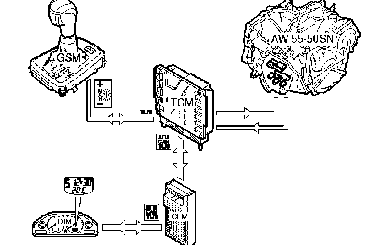 There are diagnostics for the gear selector module (GSM). Diagnostic trouble codes (DTCs) are stored in the transmission control module (TCM) in the event of a fault.