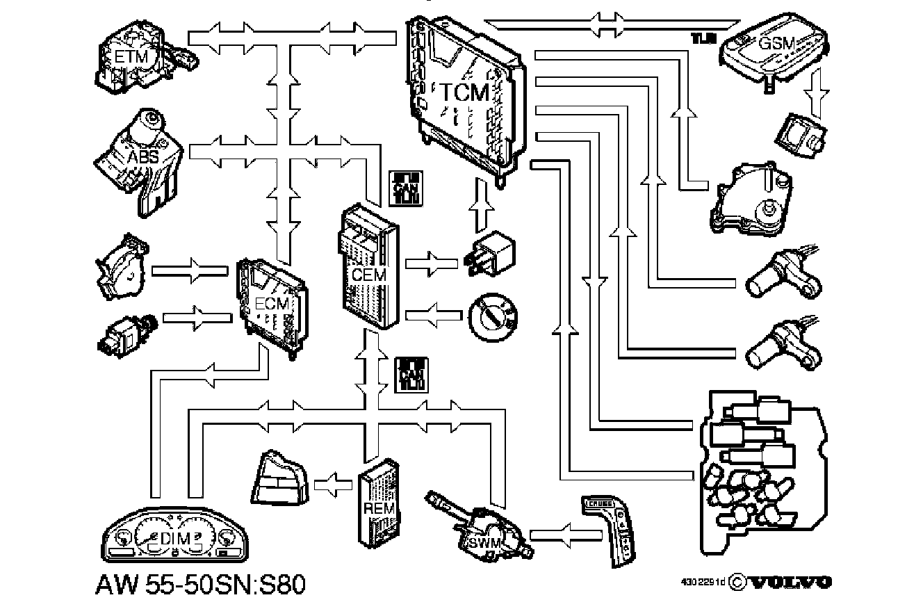 - Gear selector module (GSM) - Provides the transmission control module (TCM) with information about the Geartronic mode and winter mode (W) amongst others.