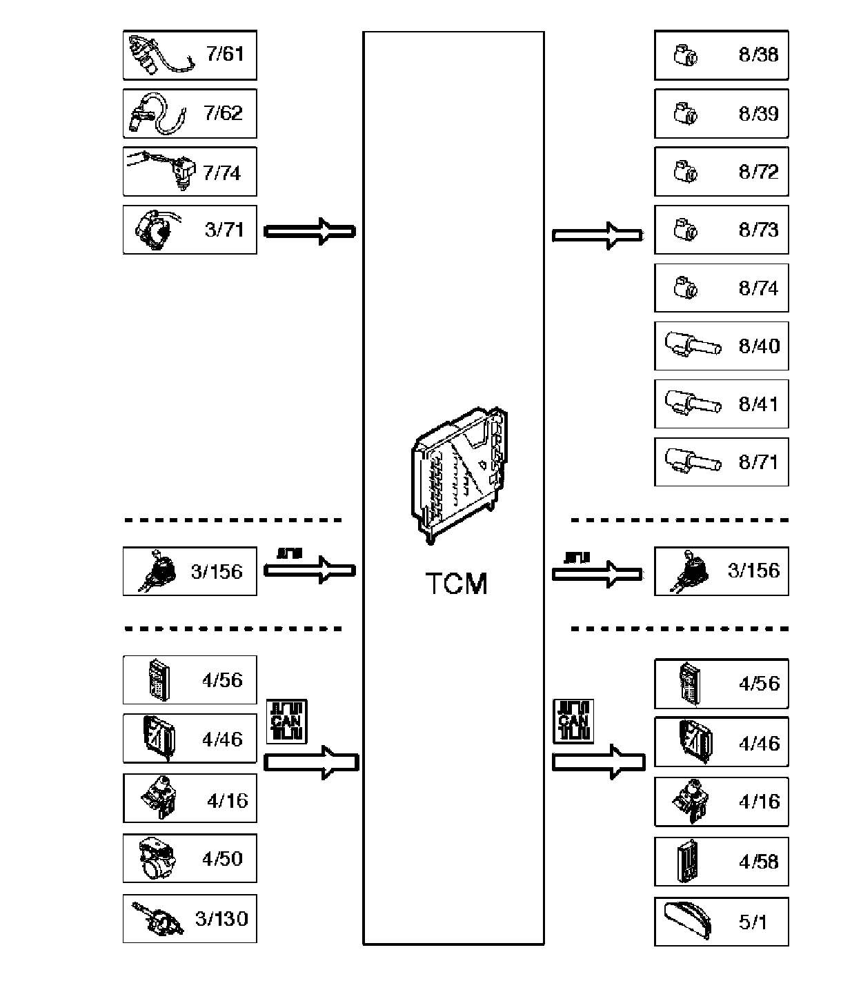 - Transmission control module (TCM) Controls activation and deactivation of the solenoids by processing the signals from components such as the transmission input and output speed sensors and the temperature sensor. Also stores adaptive data as well as diagnostic trouble codes (DTCs) and frozen values for diagnostics