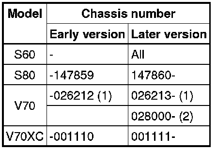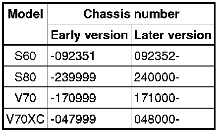 The difference between the early and late versions can be seen from the chassis number in the table below.