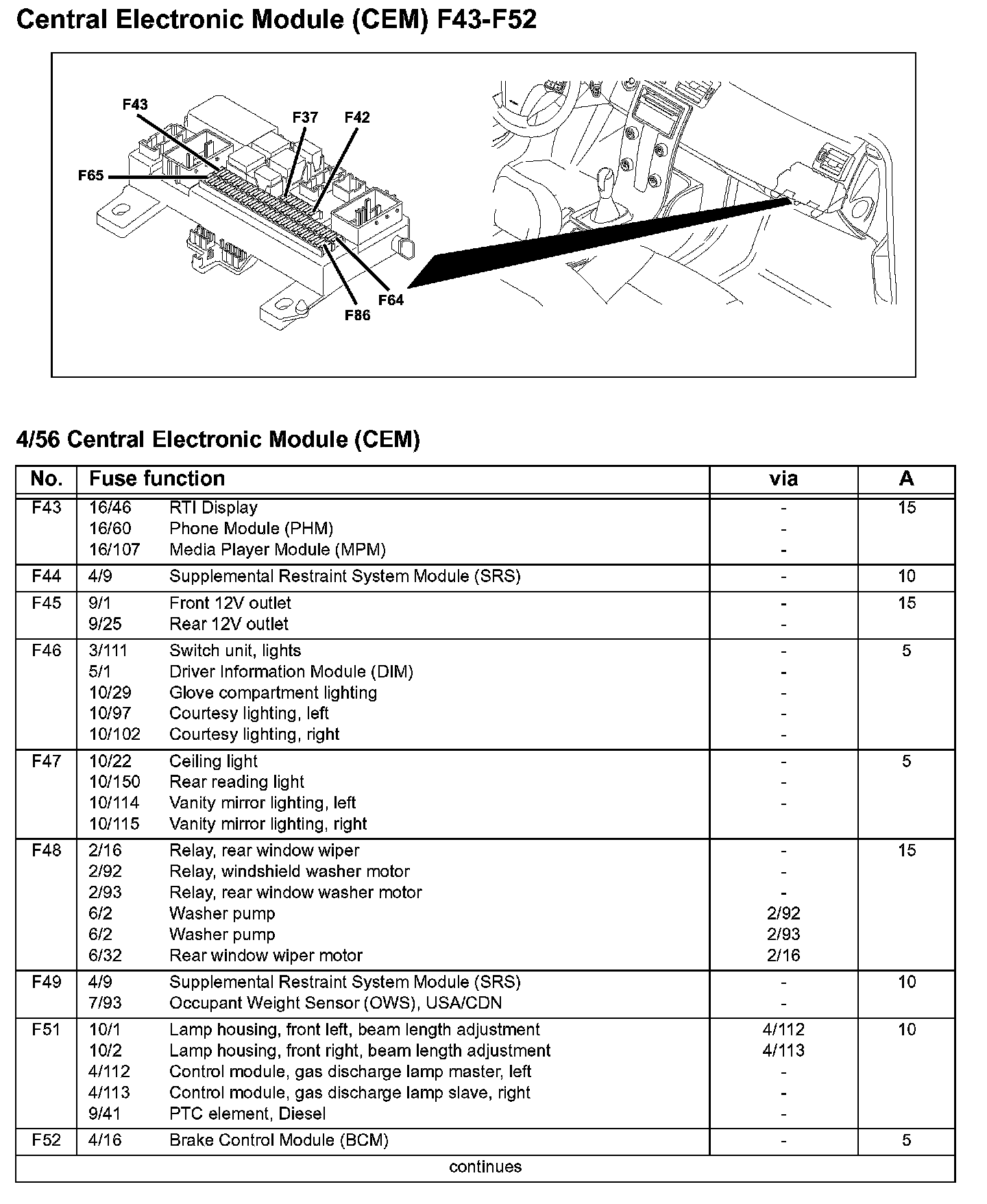 Central Electronic Module (CEM) F43-F52: