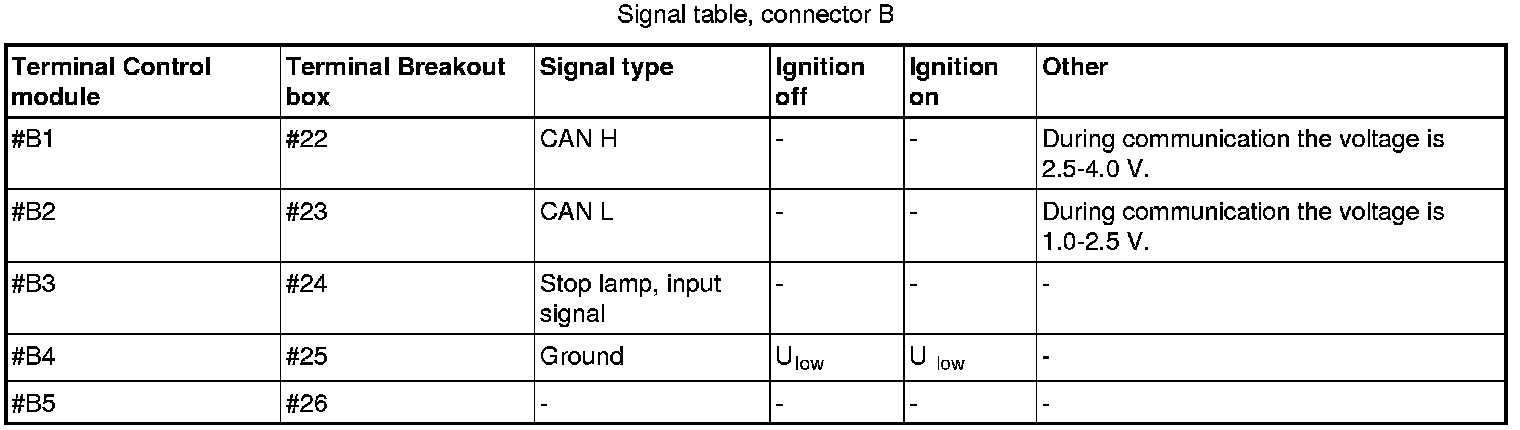 All the values given below are between the terminals stated in column 2 and terminal #B4 column 1 (power ground).