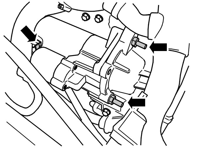 - the screws holding the starter motor against the transmission. Lift out the starter motor.