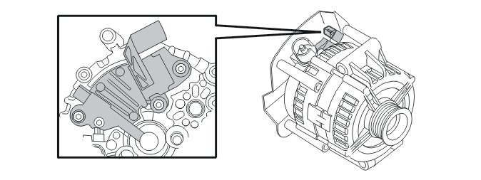 The generator (GEN) has an inbuilt charge regulator at the rear (also known as the alternator control module (ACM)). The regulator can be replaced. The carbon brushes are integrated on the slip rings on the rotor on the regulator.